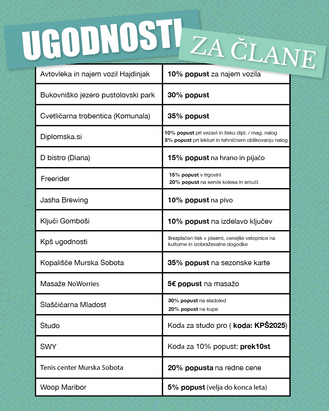 Članska izkaznica je identifikacijski znak za koriščenje ugodnosti pri lokalnih ponudnikih, ki so zbrane tukaj. Ob koriščenju ugodnosti je potrebno predložiti tako člansko izkaznico kot tudi identifikacijski dokument.
